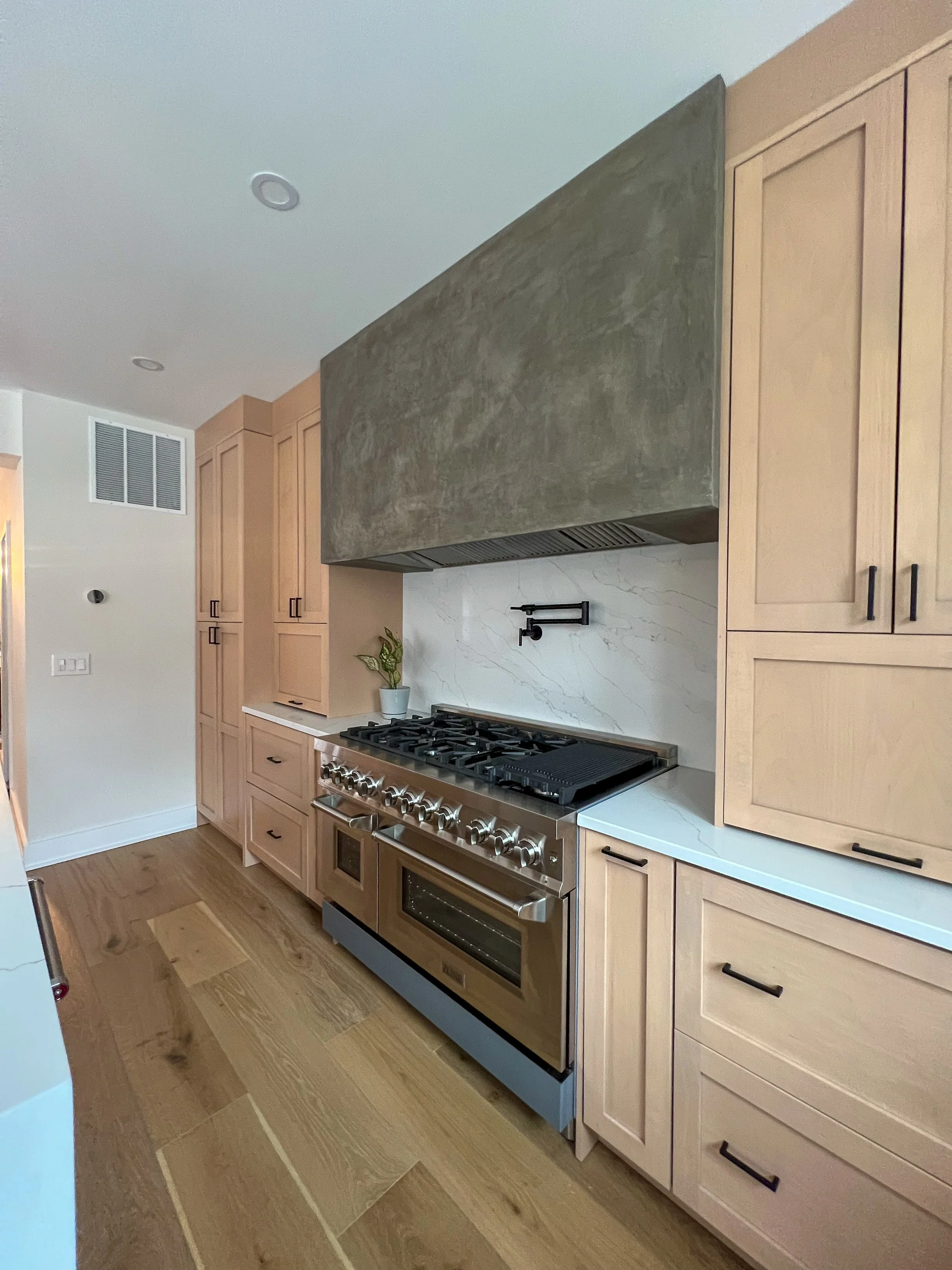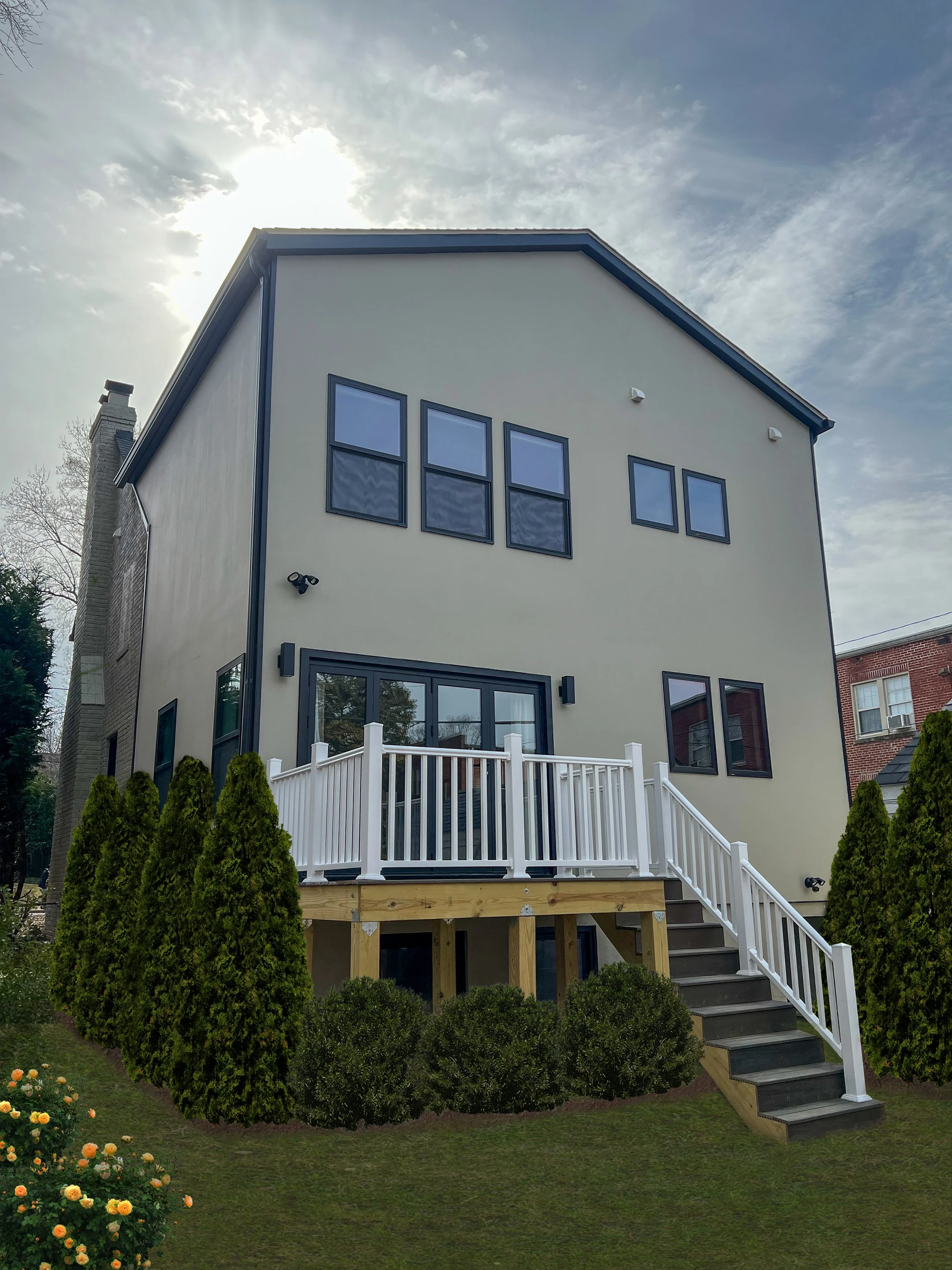 The client had a vision for a contemporary home with upgraded finishes, reconfigured rooms, and a new 1800 SF addition. The rear addition contains a master suite, kitchen and living room and basement recreation room