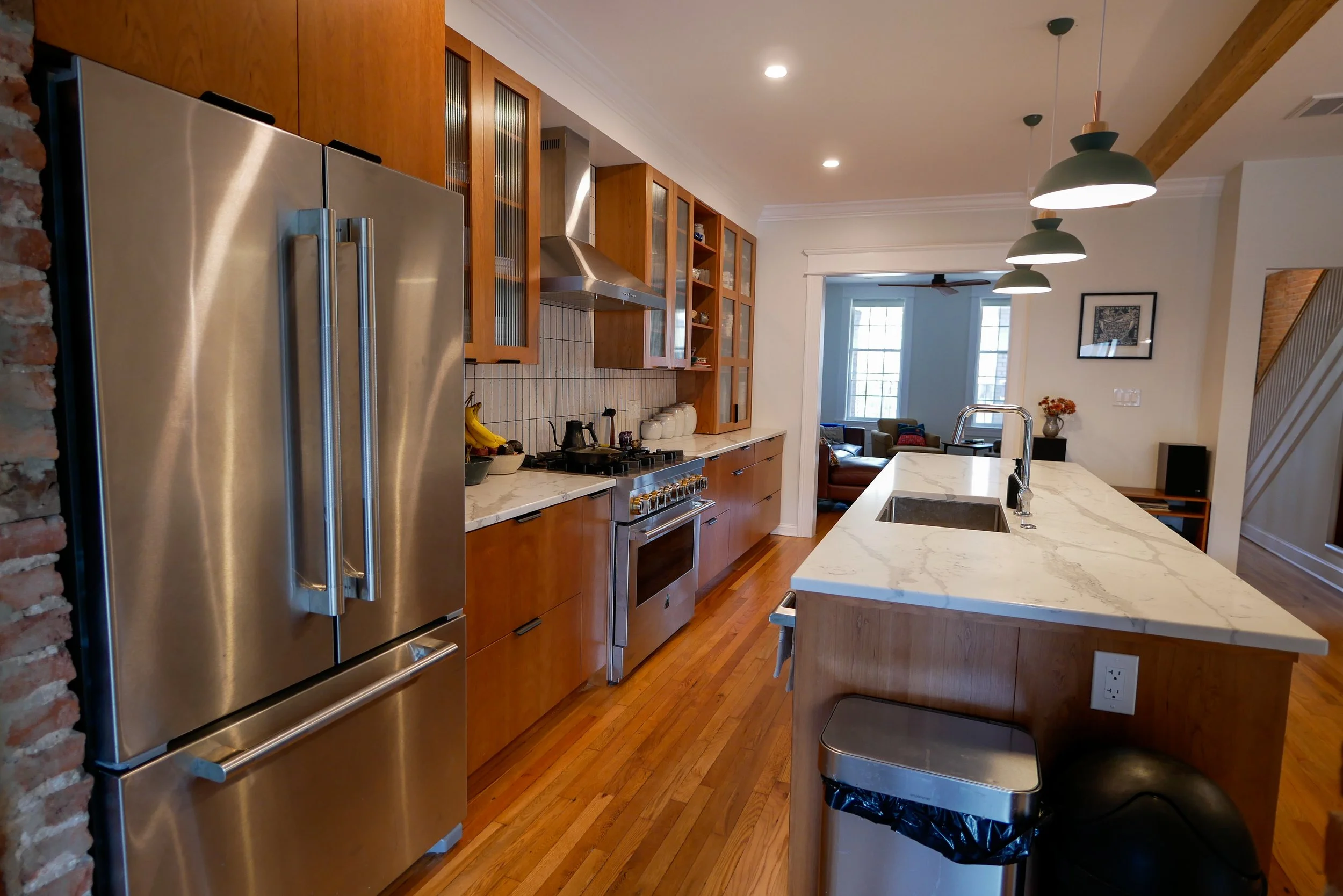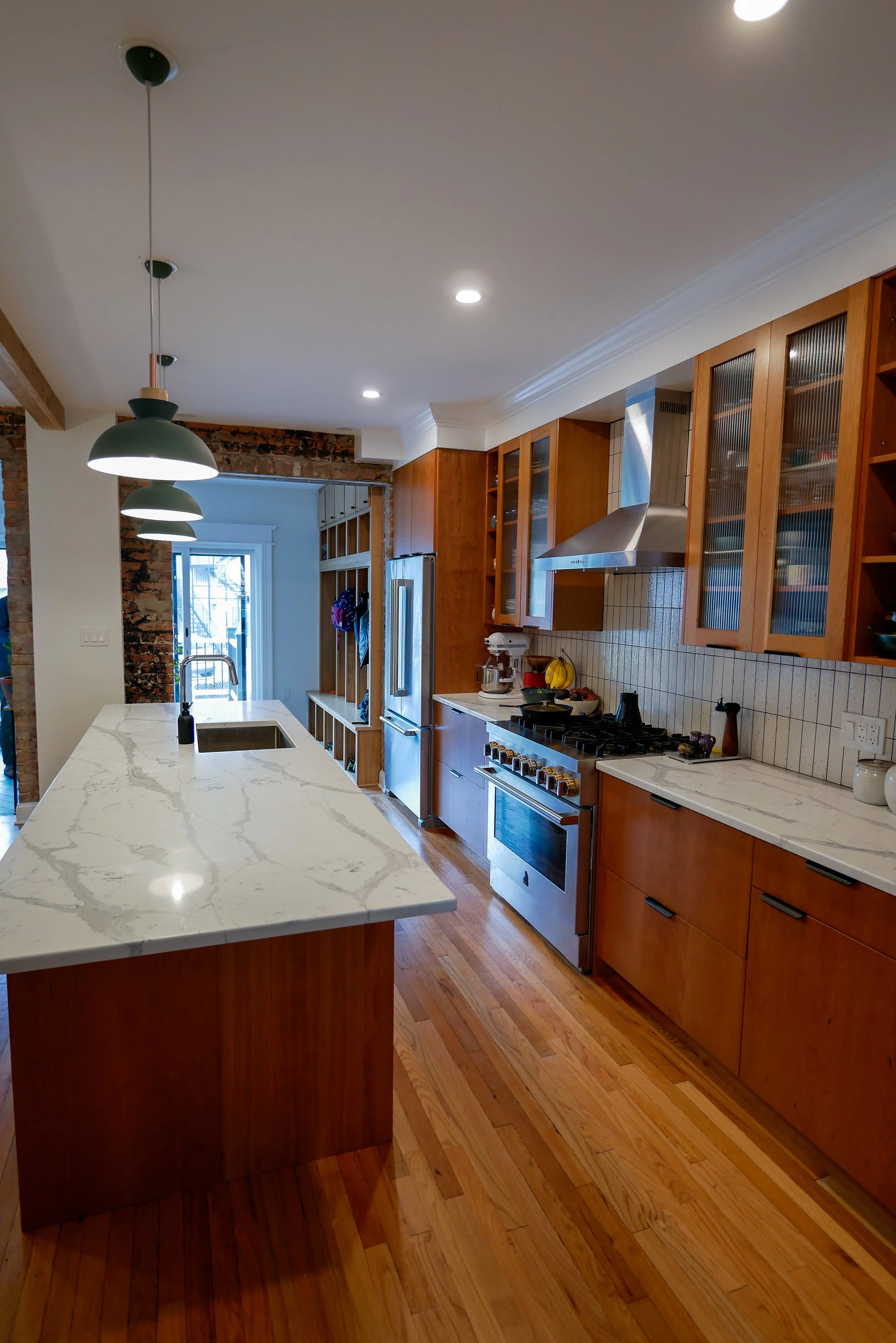 The Owner purchased this home in almost original condition with a dream of making it their own. With exposed brick walls, skylights, and original hardwood flooring the home retained much of it’s charm while the Owner was able to make their mark on the home with pops of color, custom cherry millwork and a new rear deck.